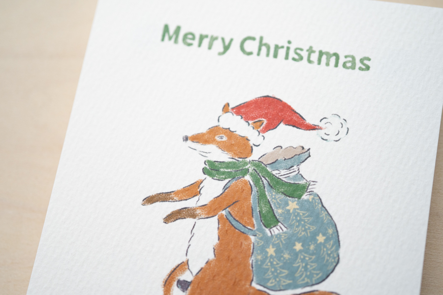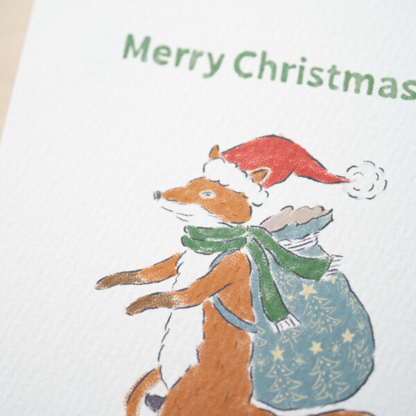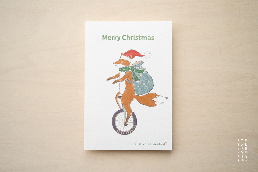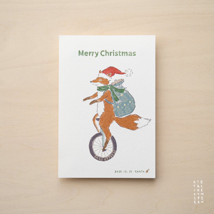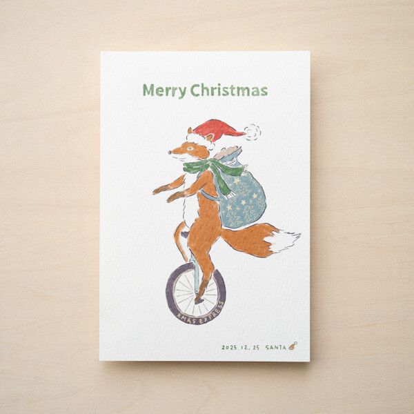 今年のクリスマスは、一輪車でプレゼントを運ぶキツネ。